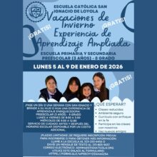 ¿Sus hijos asisten actualmente a una escuela pública y tendrán vacaciones durante las primeras semanas de enero, mientras que la Escuela Parroquial San Ignacio de Loyola ya habrá reanudado las clases? Los invitamos a usted o a sus hijos, desde preescolar (a partir de los 3 años) hasta octavo grado, a participar en nuestros Días de Aprendizaje Extendido durante las vacaciones de invierno, con una experiencia de un día de prueba gratuita del 5 al 9 de enero de 2026. Esta es una oportunidad única para que experimenten nuestro ambiente de fe, nuestro enfoque académico práctico y nuestra maravillosa comunidad. Visite nuestra página de Eventbrite o comuníquese con la oficina de la escuela o consulte nuestro sitio web para reservar un lugar para su hijo hoy mismo.